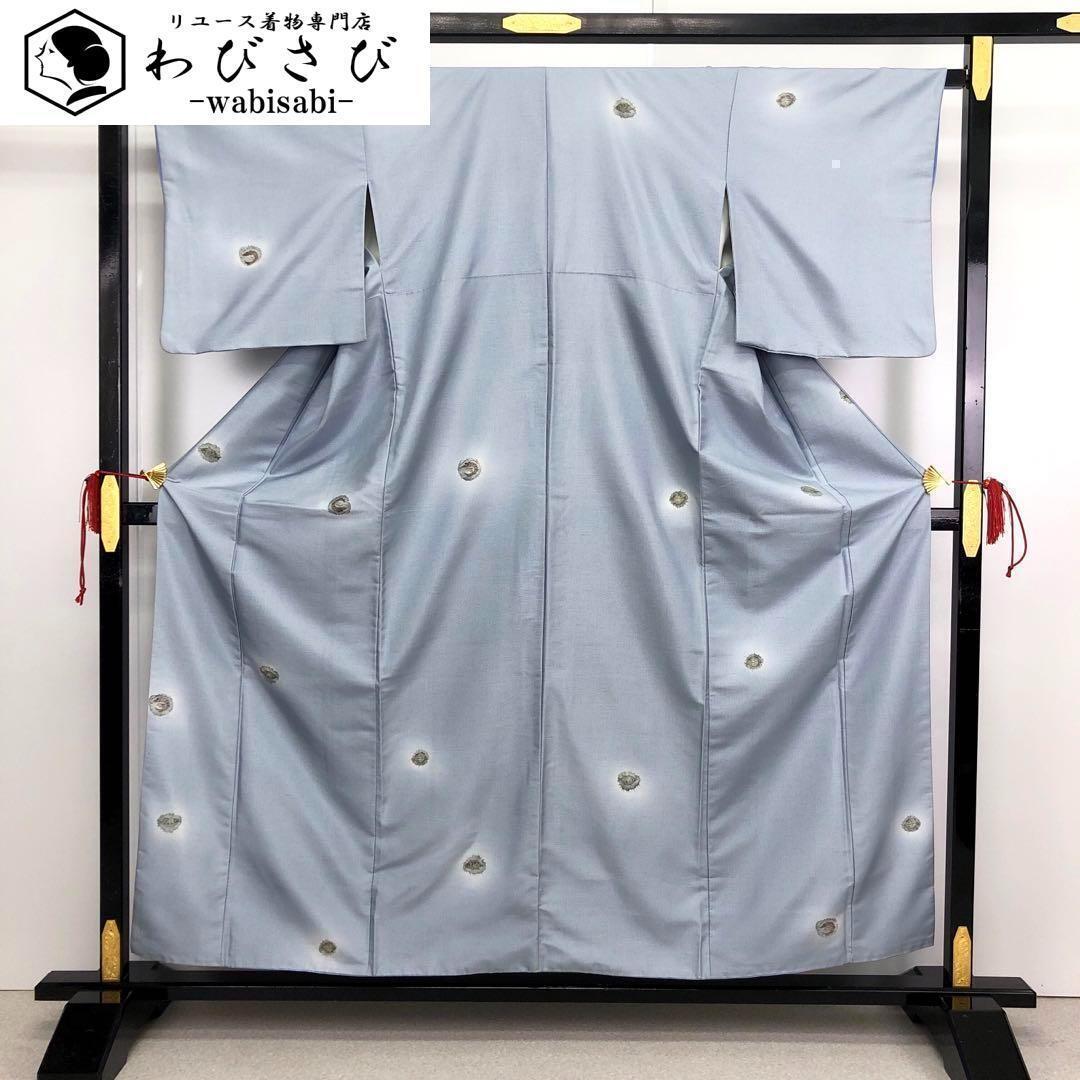 - 本場大島紬 染大島 飛び柄 魚 海老 蒼白色 K-3075 着物 きもの kimono 和服 和装 中古 リサイクル着物 【送料無料】