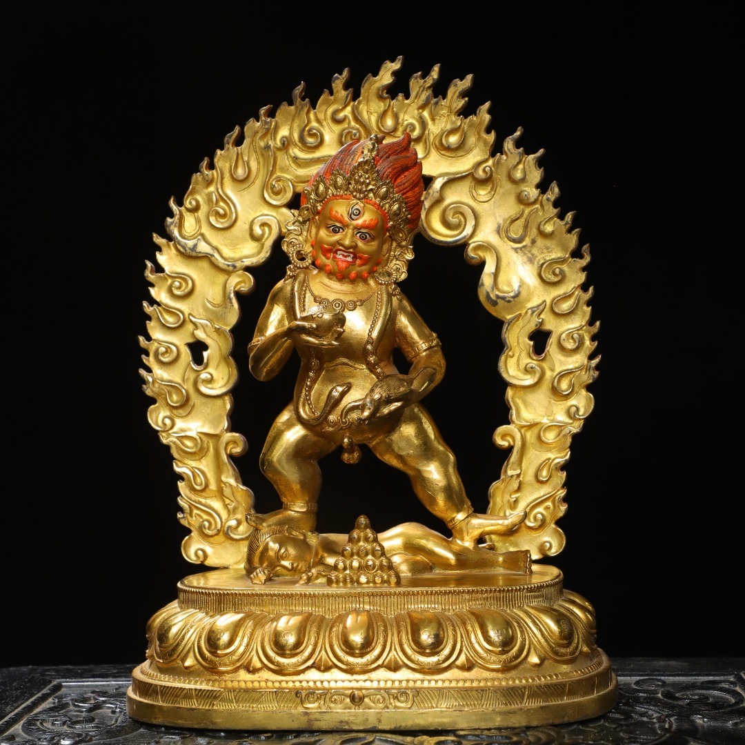 > 仏像 清代 銅琉金描彩 チベット仏教 【大黑天】造像 仏教古美術 供養品 極細工 時代物 古置物 中国古美術 唐物 旧蔵 S77