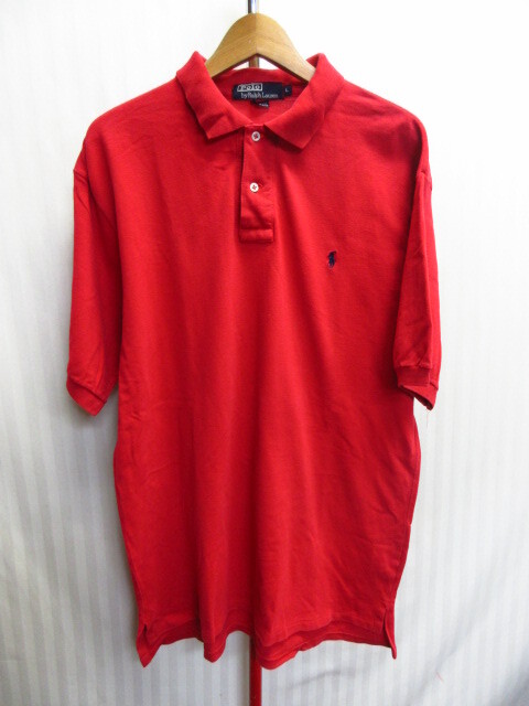 - USA製 ラルフローレン 90sヴィンテージ ポロシャツ メンズUS L XLサイズ 赤 襟付き半袖カットソー 半袖シャツ アメリカ製シャツ07172