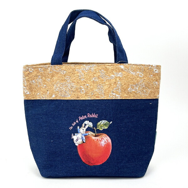 コルク×デニムの素材が可愛いランチバッグです。マチ付きなので安定しやすく安心♪ピーターラビットと楽しくランチをしましょう!