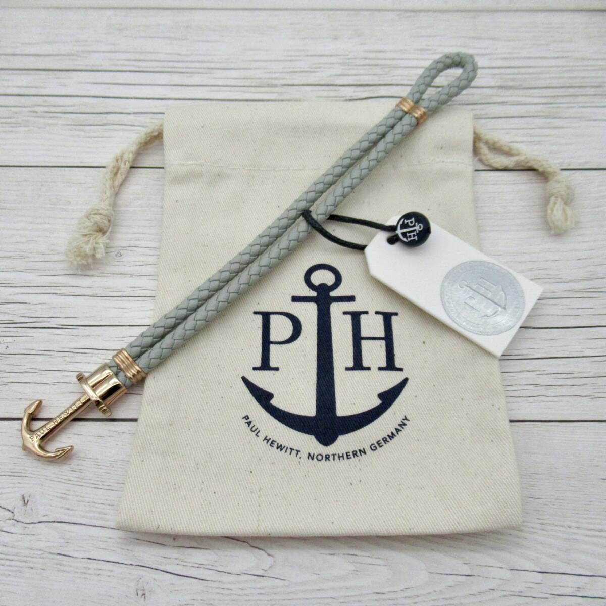 > 【新品未使用】Paul Hewitt ポールヒューイット Sサイズ グレー アンカー ブレスレット レザー 革 ステンレス 錨 アクセサリー