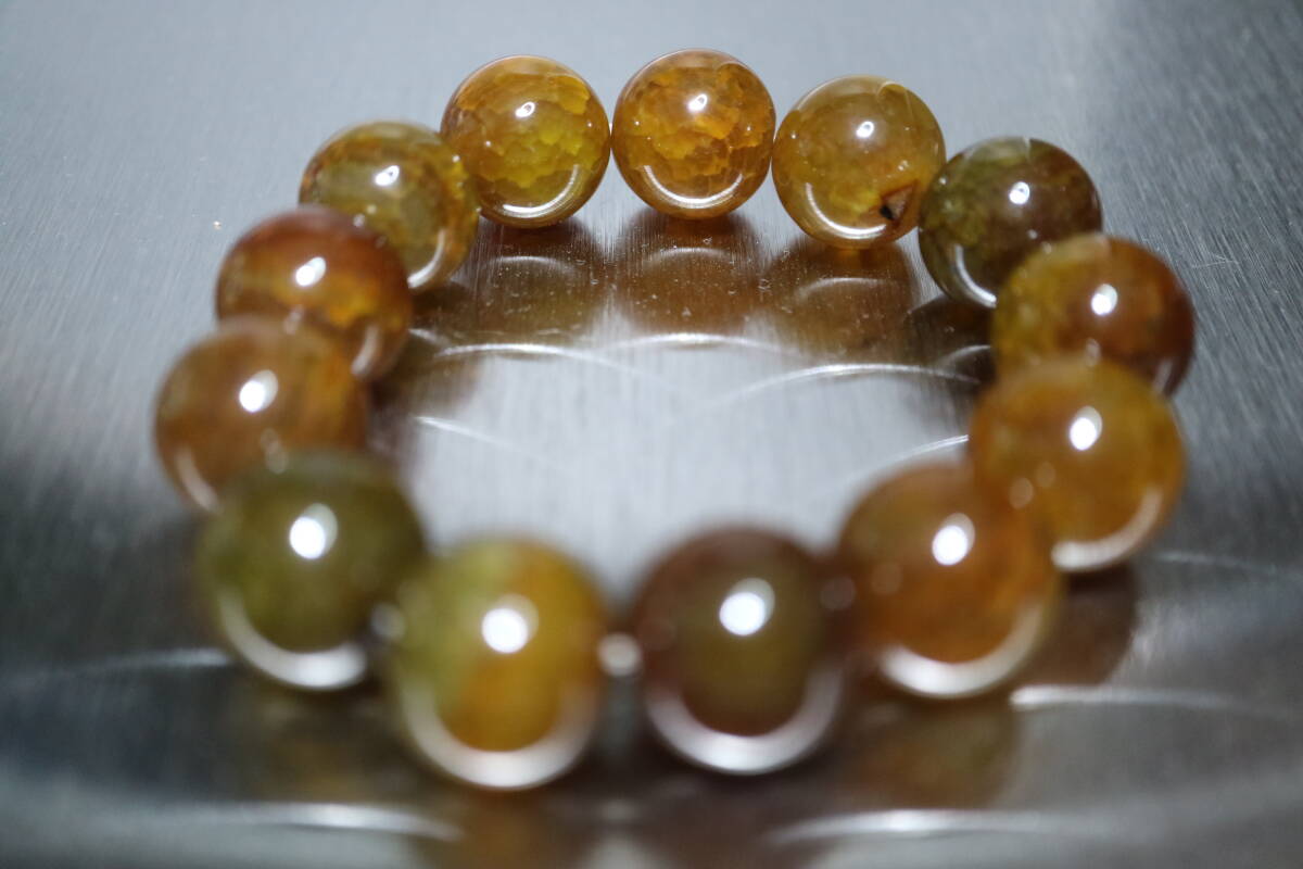 - グリーンドラゴンアゲートタンブル玉約16ミリ数珠ブレスレット