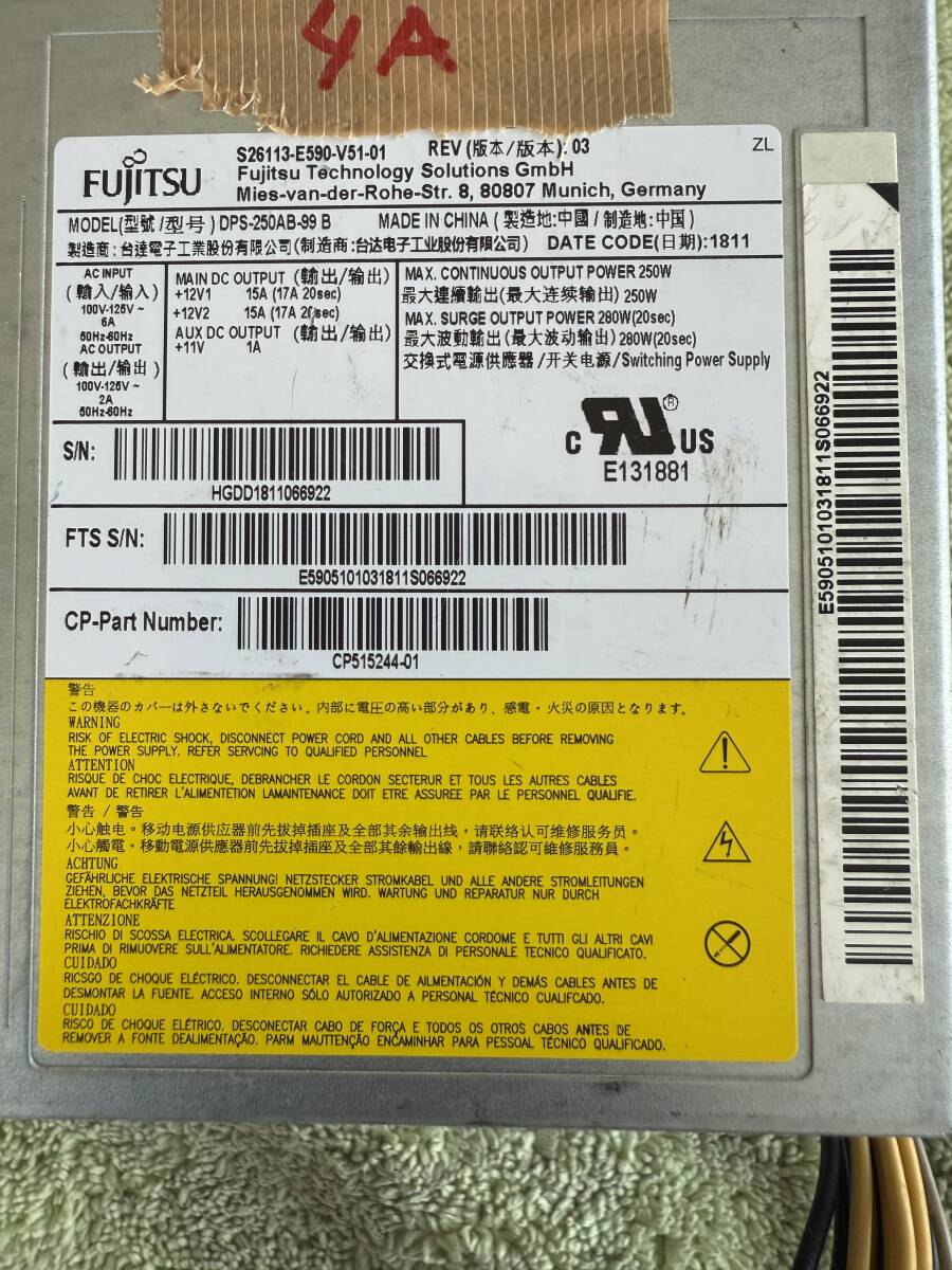 - FUJITSU 電源ユニット DPS-250AB-99 B 中古