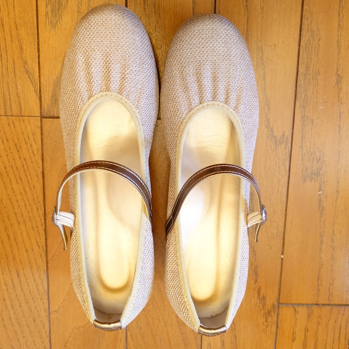 > ファーストコンタクト Firstcontact 痛くないパンプス ゴールド ベージュ クリーム系 ストラップ ウエッジソール 美品 23.5