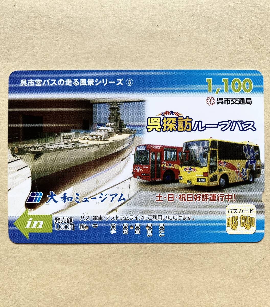 - 【使用済】 バスカード 呉市交通局 呉市営バスの走る風景シリーズ⑤ 呉探訪ループバス 大和ミュージアム