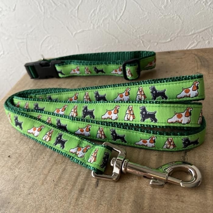 - アメリカンコッカースパニエル・グリーン 首輪&リードのセット アメリカ製
