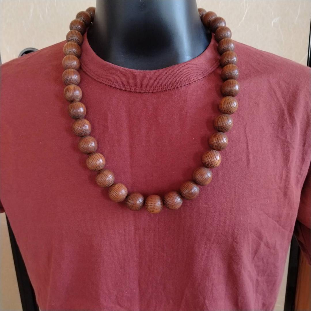 - 数珠 念珠 ネックレス 木彫り 般若心経 大玉 法霊数珠 20mm玉 約75cm