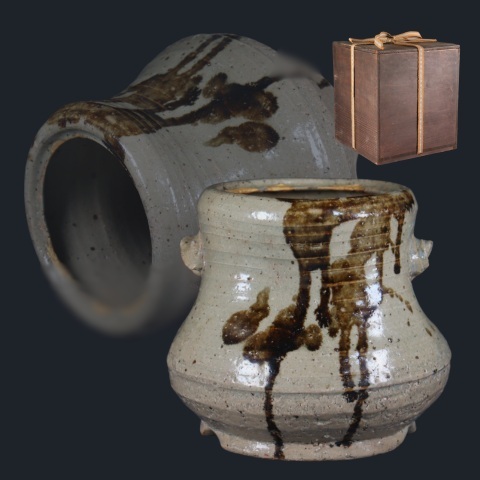 - 蔵出し品 古瀬戸 時代 自然釉 耳付水指