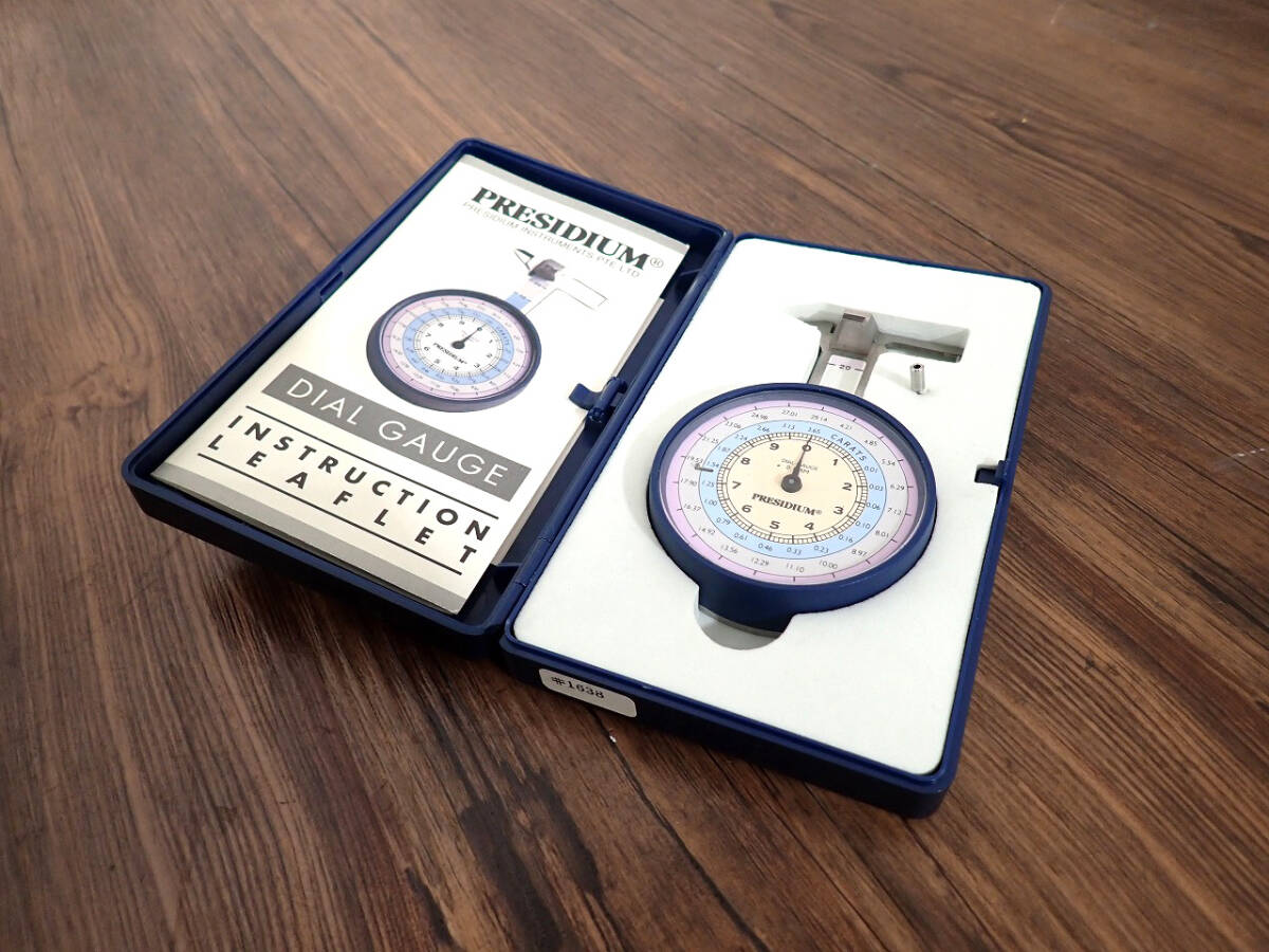 - 中古 測定器 PRESIDIUM DIAL GAUGE プレシディアム ダイヤルゲージ 0.1mm 計測器 アナログ式 ケース付 レトロ ブルー 1
