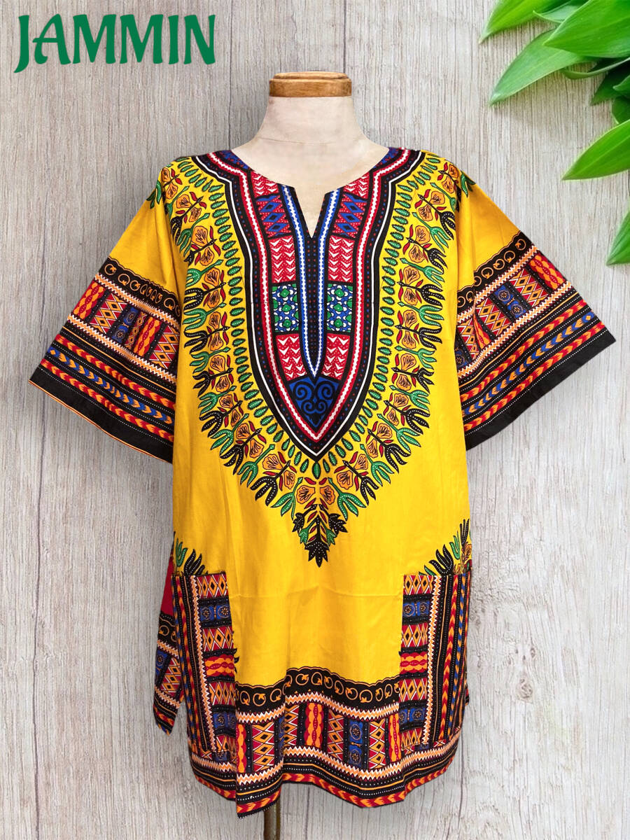 - アフリカ民族衣装ダシキ 黄色 エスニック アジアン ダシキ ダンス 大きいサイズ