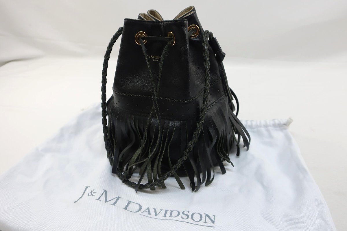 > ☆【B送900円】2061 J&W DAVIDSON ジェイ&エムデヴィットソン カーニバルL ショルダーバッグ 巾着型 レザー ブラック フリンジ