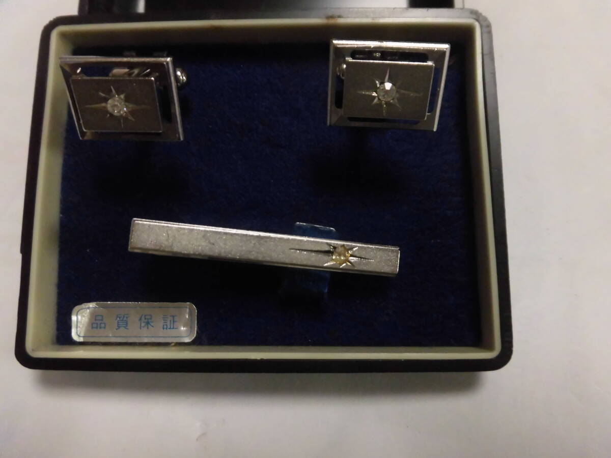 - ダイヤ ネクタイピン カフス セット 美品 収納ケース付き