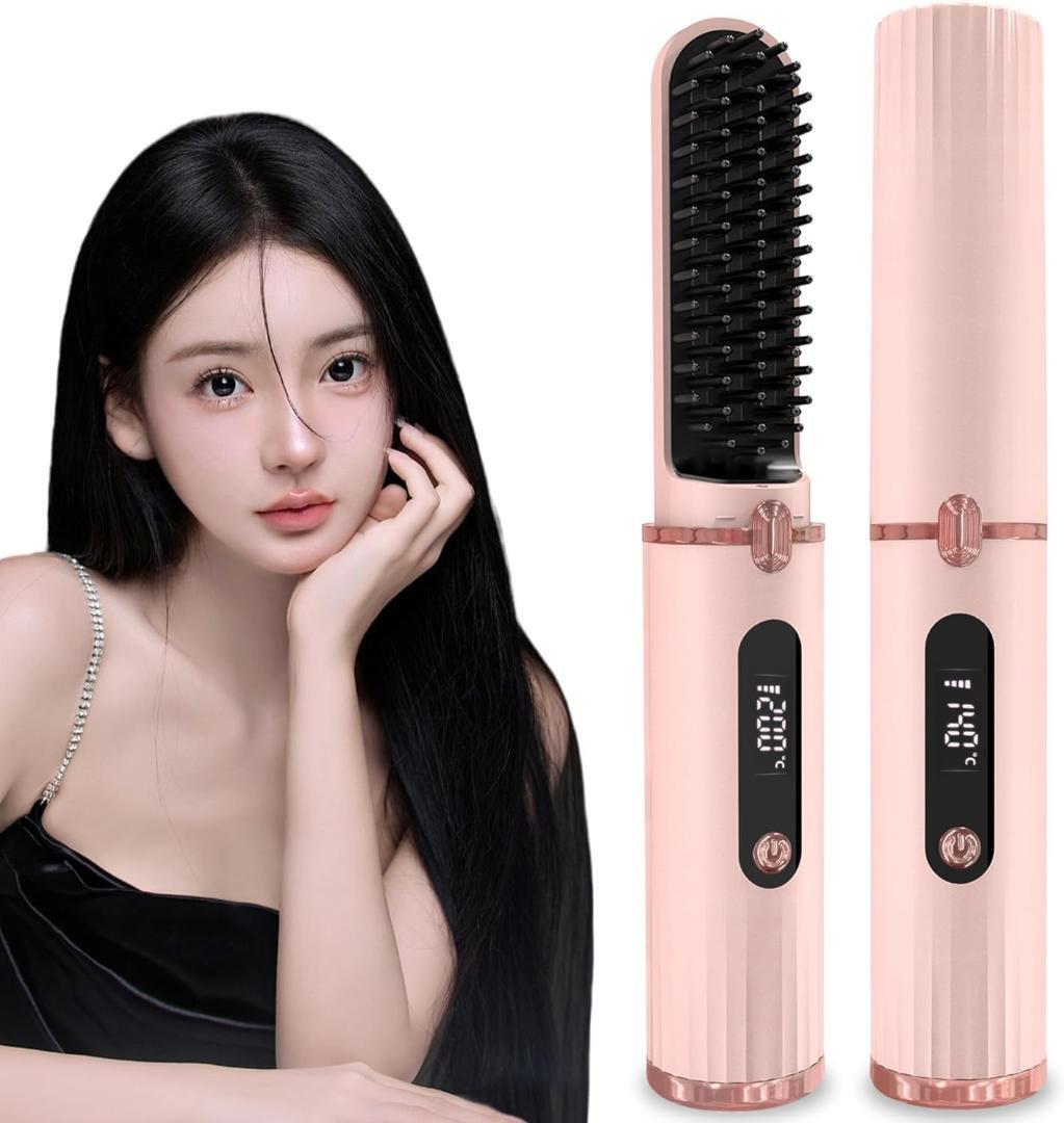- ヒートブラシ ヘアアイロン コードレスヘアアイロン 140~200℃温度調整 15分間自動電源オフ 海外対応 火傷防止設計 4段階調節 MAX200℃