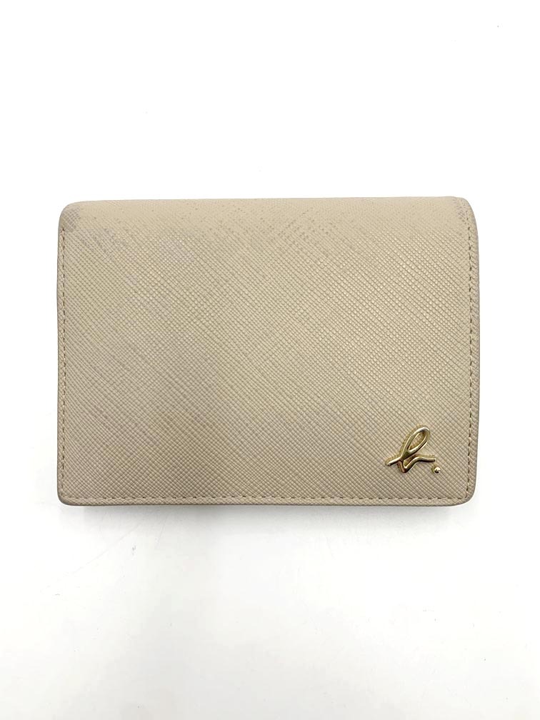 - ゆうパケットOK agnes b アニエスベー サフィアーノエンボス 二つ折り 財布 ベージュ ■■