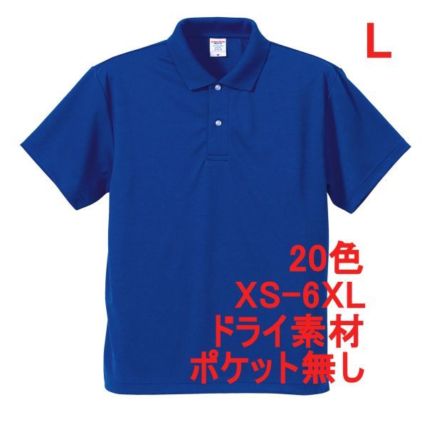 - ポロシャツ L コバルト ブルー ドライ素材 ベーシック 無地 半袖 ドライ 吸水 速乾 胸ポケット無し A691 青 青色 591001 5910 5910-01