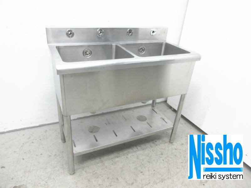 > ■中古 ステンレス2槽シンク・900×450×785/885(mm)・厨房専門店!! (5c4046l)