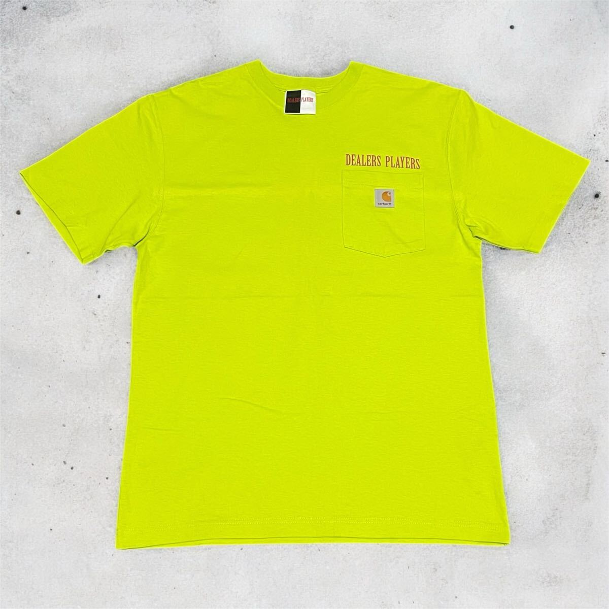 > 比較的美品 カーハート Dealers Players コラボ ポケット Tシャツ Carhartt ディーラーズプレイヤーズ Tee ネオングリーン バックプリント
