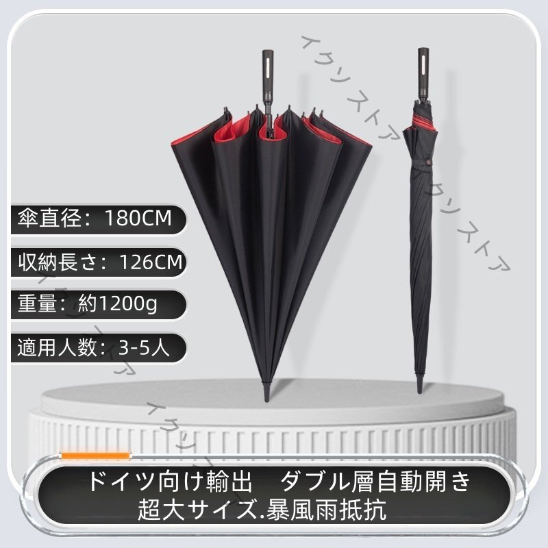 - ドイツ向け輸出 ダブルレイヤー自動長柄 超大サイズ 強化 厚 丈夫な暴風雨対抗 傘 日傘 雨傘 完全遮光 遮熱 遮光 手動 手開き 直径180CM