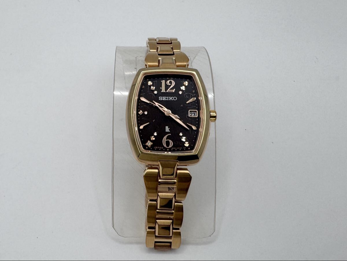- 【質屋 尾張屋商店 東京】 ☆仕上済☆ セイコー ルキア レディース腕時計 1B32-0AE0 電波ソーラー ゴールド ブラック