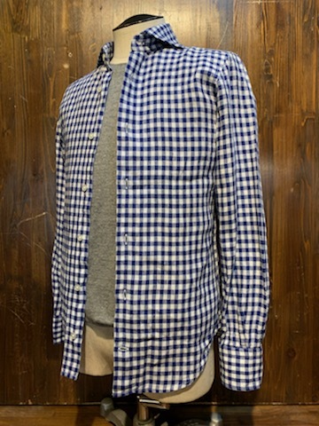 > K351 メンズ シャツ BEAMS HEART ビームス チェック 長袖 青 リネン 麻 小さいサイズ セレクトショップ / S 全国一律レターパック