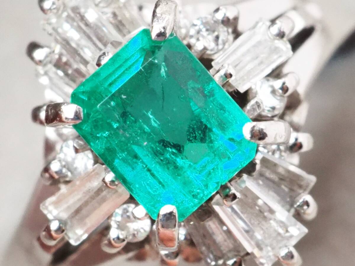 > 【7371M】ソーティング付 Pt900 天然エメラルド 天然ダイヤモンド 0.70ct/0.55ct/6.32g/リング 指輪 ♯10