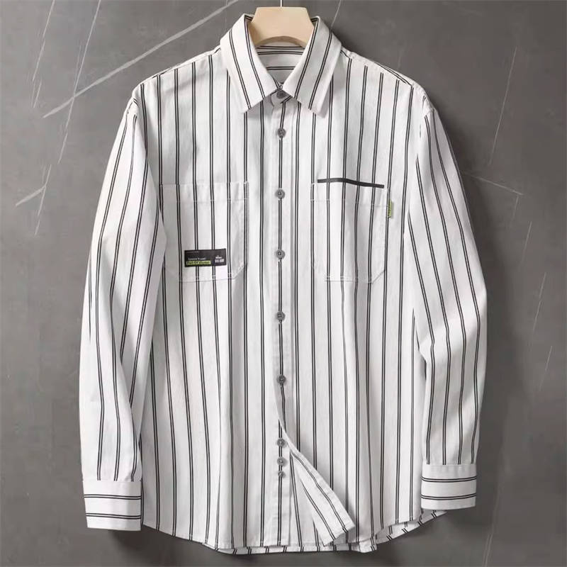 - T2113-2XLホワイト 新品 コットン混 長袖シャツ 形態安定 通気 柔らかい 春夏秋 メンズ ストライプ レギュラーカラー シャツ ワークシャツ
