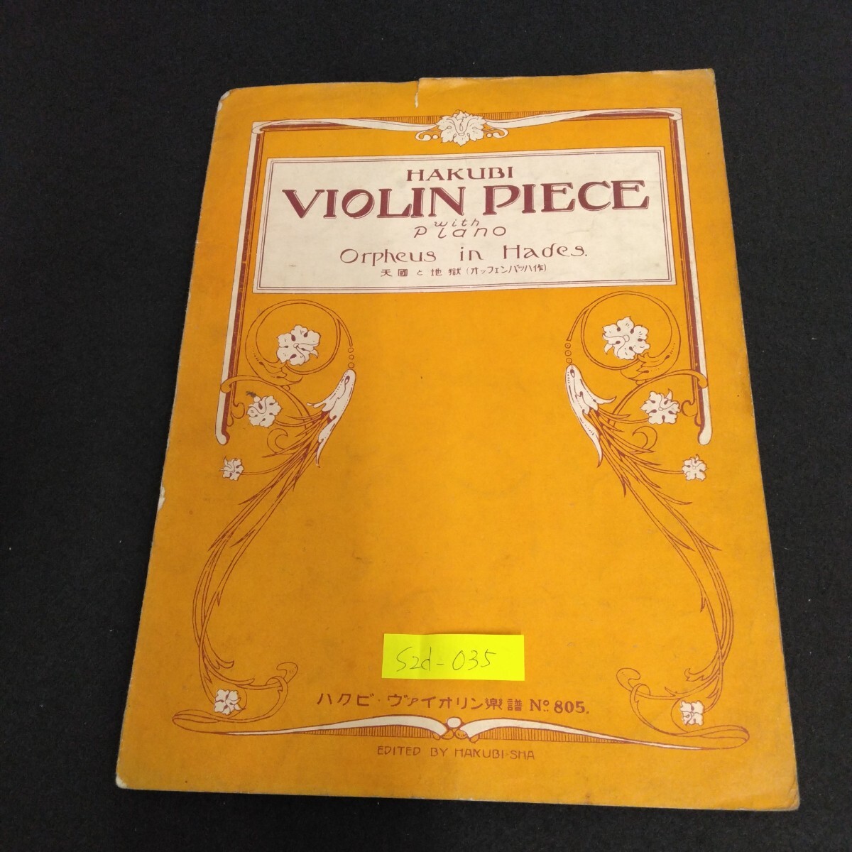 > S2d-035 HAKUBI VIOLIN PIECE with Piano 天国と地獄 オッフェンバッハ作 大正13年10月5日発行 ハクビ・ヴァイオリン楽譜No.805