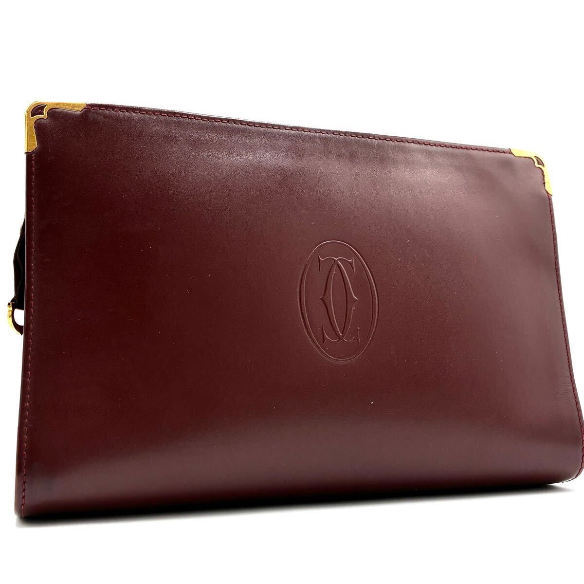 > 1円 廃盤・美品 Cartier カルティエ マストライン クラッチバッグ セカンドバッグ メンズ カーフレザー ロゴ 小物入れ ボルドー