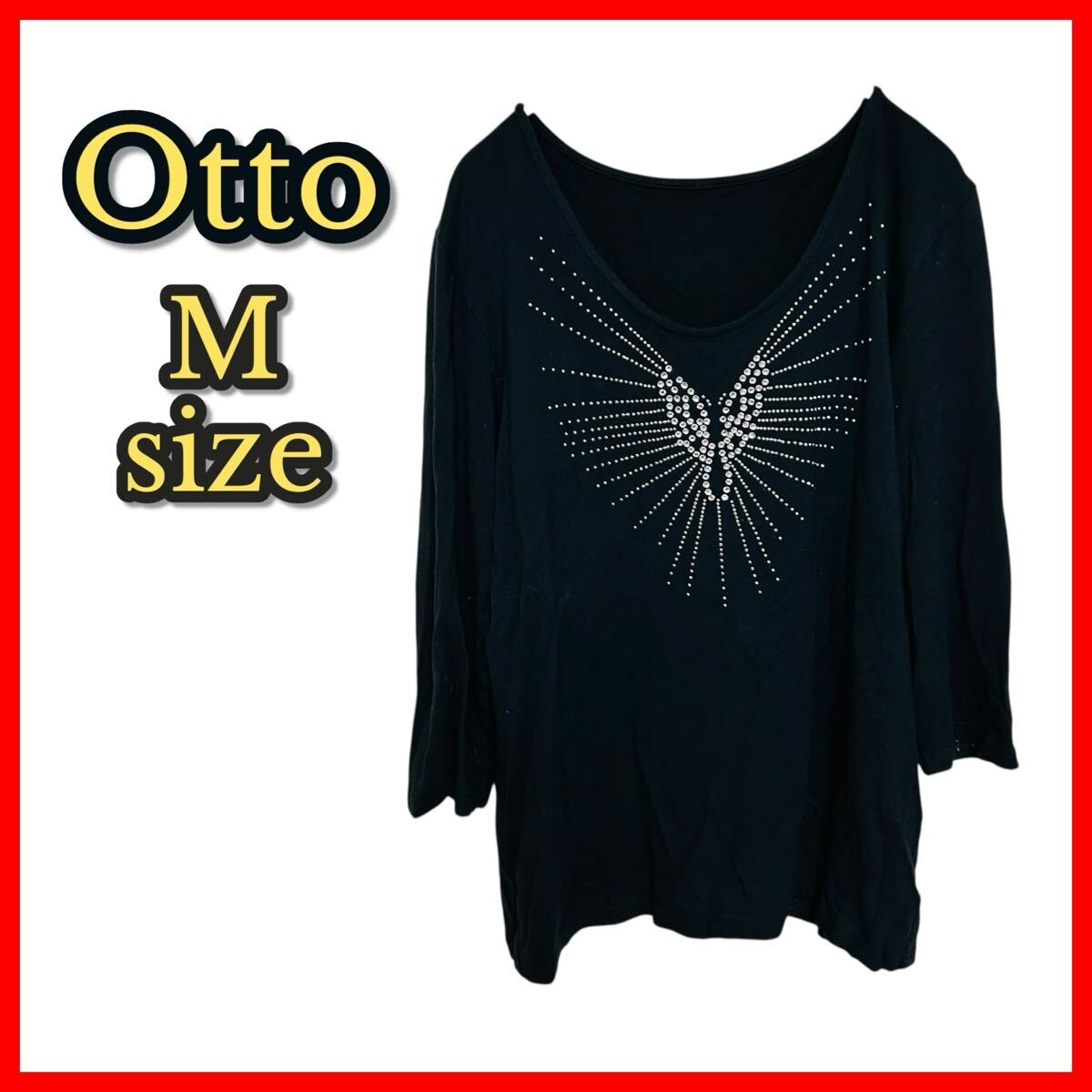 > 【Otto オットー】ロングTシャツ Mサイズ ブラック 長袖 薄手 ビジュー付き キラキラ カジュアル 大人可愛い トップス コーデ 春秋