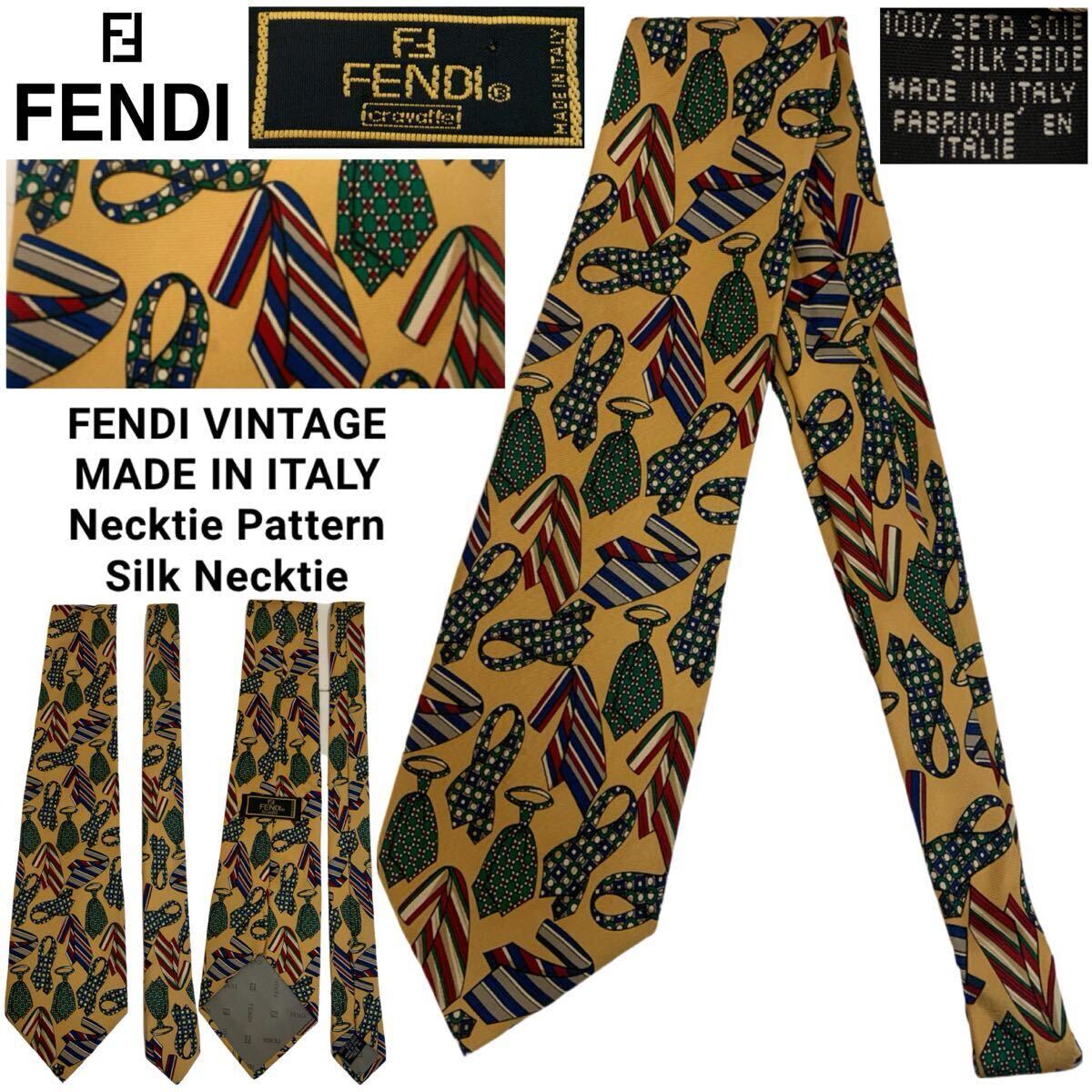 > FENDI VINTAGE フェンディ ヴィンテージ MADE IN ITALY イタリア製 ネクタイ柄 総柄 シルクネクタイ ネクタイ ベージュ系 アーカイブ