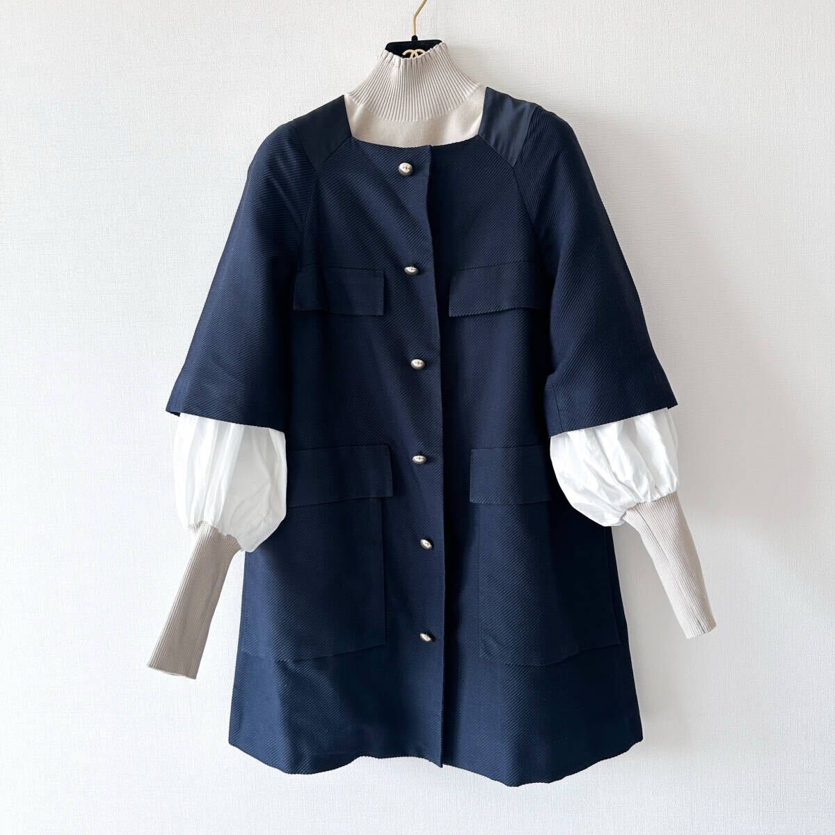 - Drawer ドゥロワー / シルク混 パッチ ポケット コート ネイビー 38 濃紺 アウター M