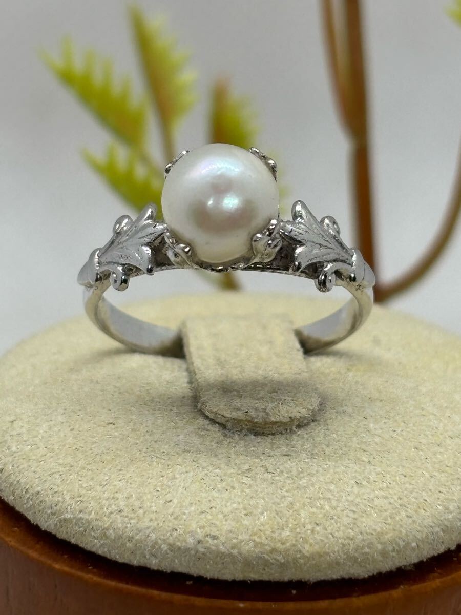 - 本真珠パール ホワイトカラー15号 7.99mm SILVER指輪(p752)