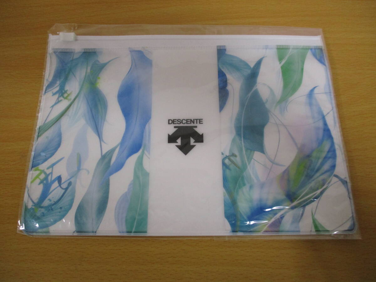 - 新品保管品!デサント★<スライドジッパー・ビニールポーチ>★白・ブルー系