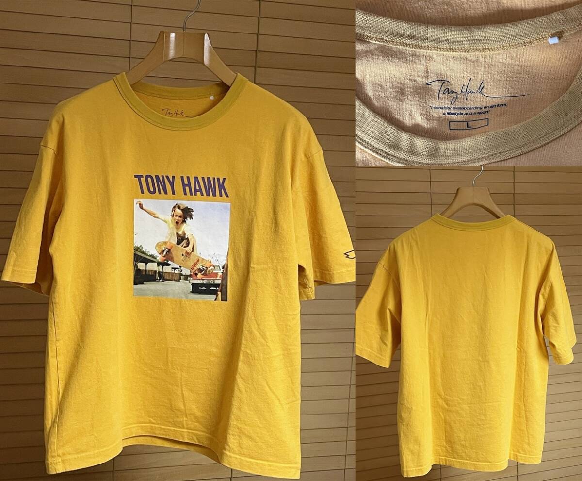 - 【激安1点のみ 国内正規品】GU × TONY HAWK ジーユー × トニー・ホーク コットン100% フォトプリント 半袖 Tシャツ L イエロー系
