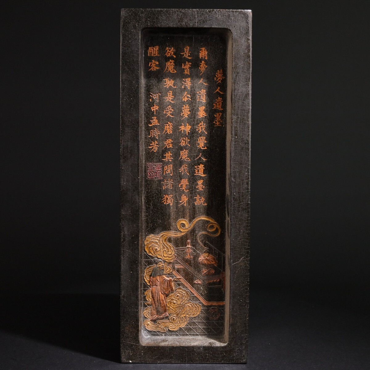 - 「古墨 施金描彩 龍行雨施文房油煙墨 在銘 清時代」手彫り 文房四宝 書道具 中国古美術 蔵出