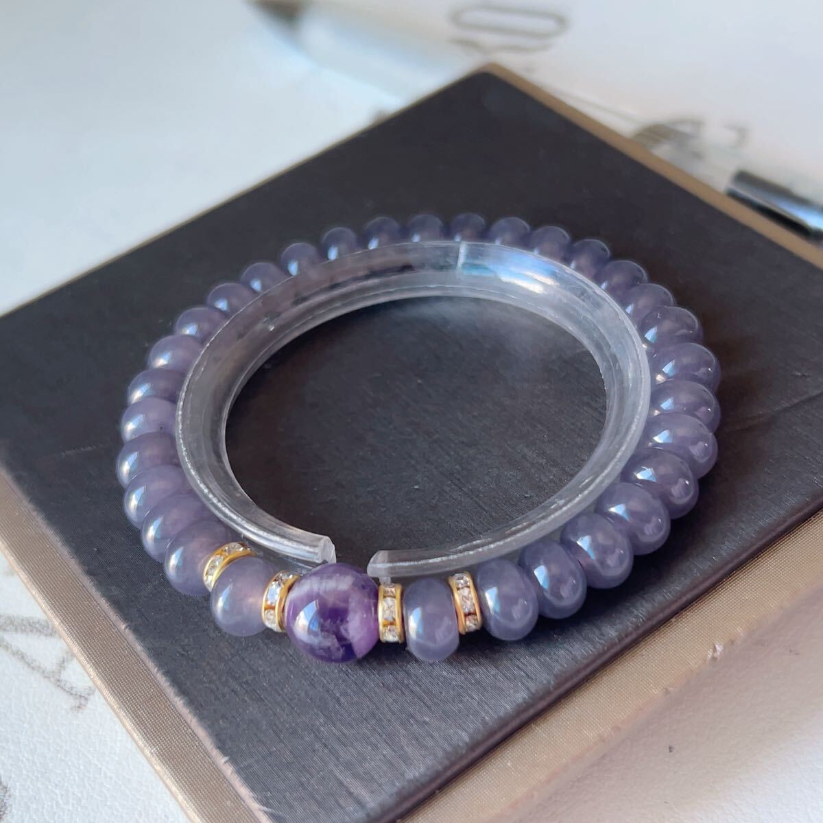 > ◇ カルセドニー+アメジスト一粒◇ブレスレット◇パワーストーン◇天然石◇巾着袋付き◇プレゼントにも 038B7253