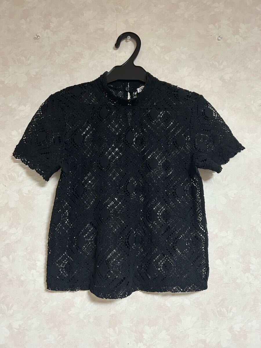 - ZARA 黒 レース 半袖シャツ レディース Sサイズ ブラック ブラウス 黒