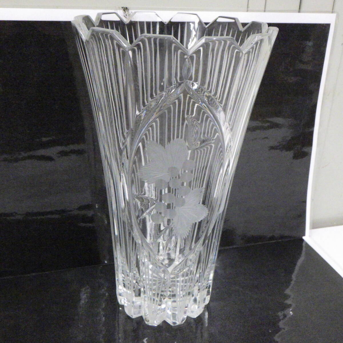 - チェコ・ボヘミア クリスタルカット ガラス 花入れ 広口 花瓶 フラワーベース