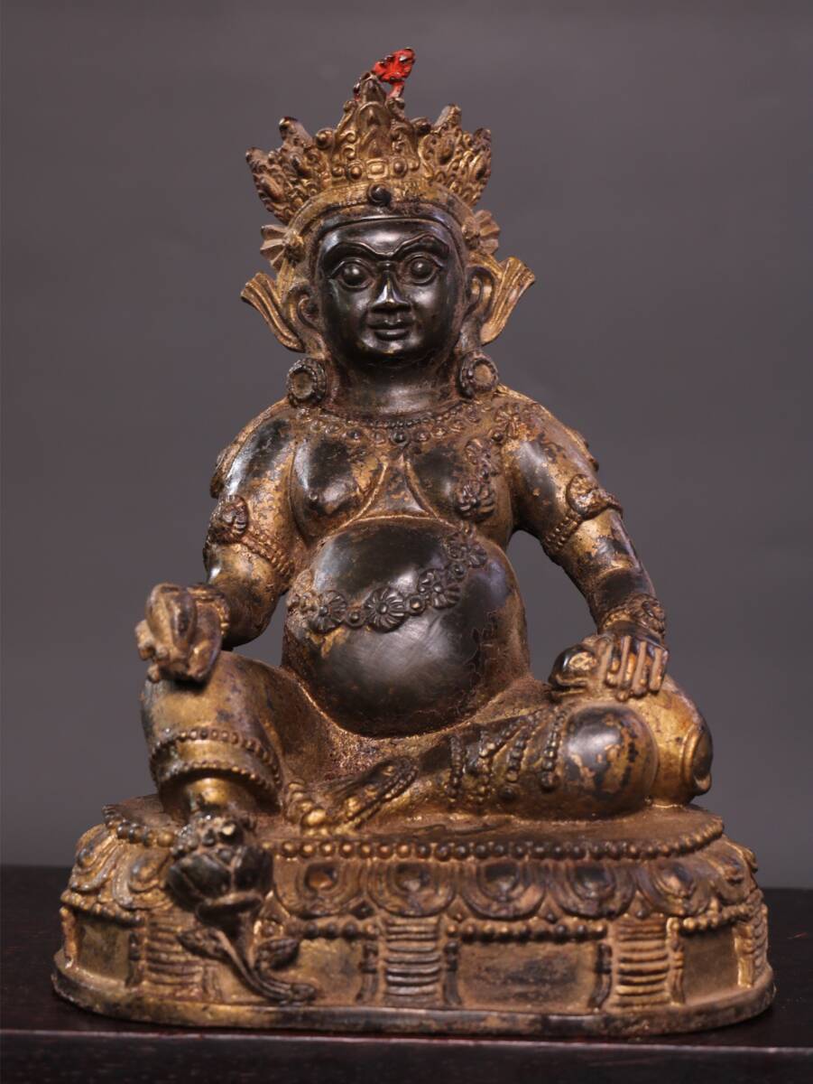 - 蔵友旧蔵出 銅製 泥金 撒朱砂 黄財神像 希少珍品 貴重品 置物 古賞物 密宗密教 供養品 仏教美術品