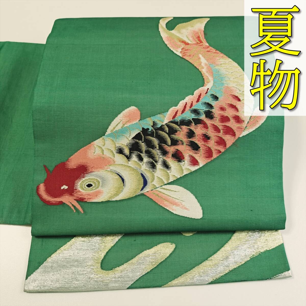 > 即決■着物の越田■幅30長さ359 正絹 アンティーク 名古屋帯 名古屋仕立て 夏物 紗 ハギレ・リメイク向け お太鼓柄 鯉 似似◇ま23J07a