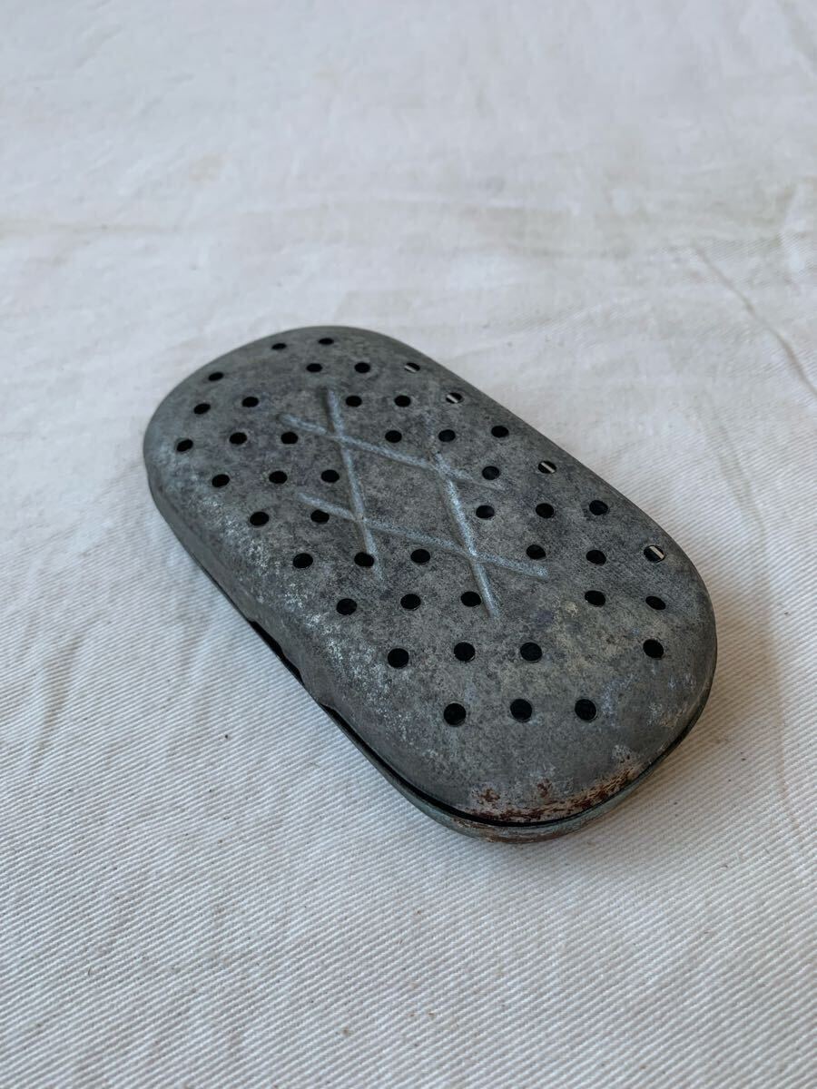 - 経年の雰囲気が素敵なパンチングアイアンケース インテリアディスプレイ小物入れインダストリアル古道具アンティークビンテージ店舗什器