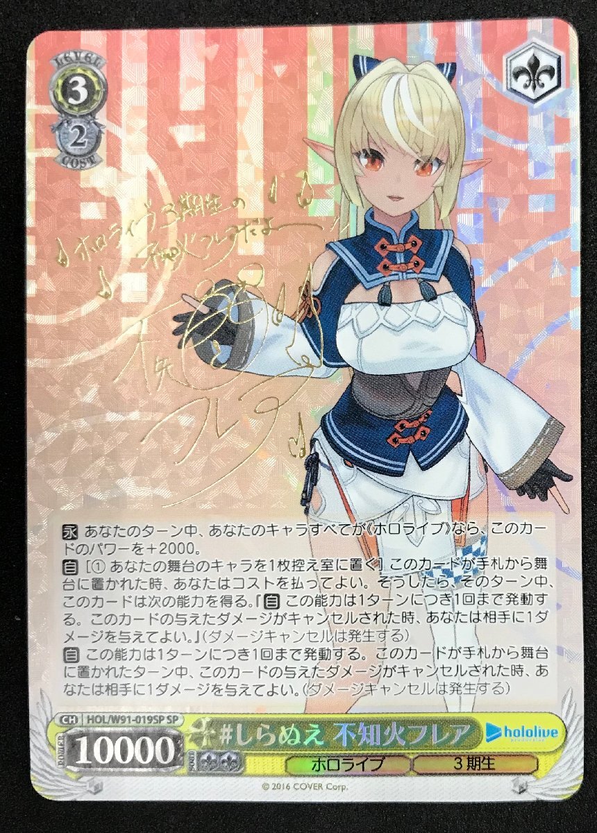 ★WS ヴァイスシュヴァルツ SP #しらぬえ 不知火フレア ホロライブ 箔押しサイン HOL/W91-019SP SP商品は中古ローダー、又はトレカ梱包用段ボールで挟み込み発送いたします。予めご了承くださいませ。※特に傷みは見受けられませんが、商品の性質上、記載のない不備がある可能性がございます。過度に状態を気になさる方、完品をお求めの方は入札をお控えくださいませ。