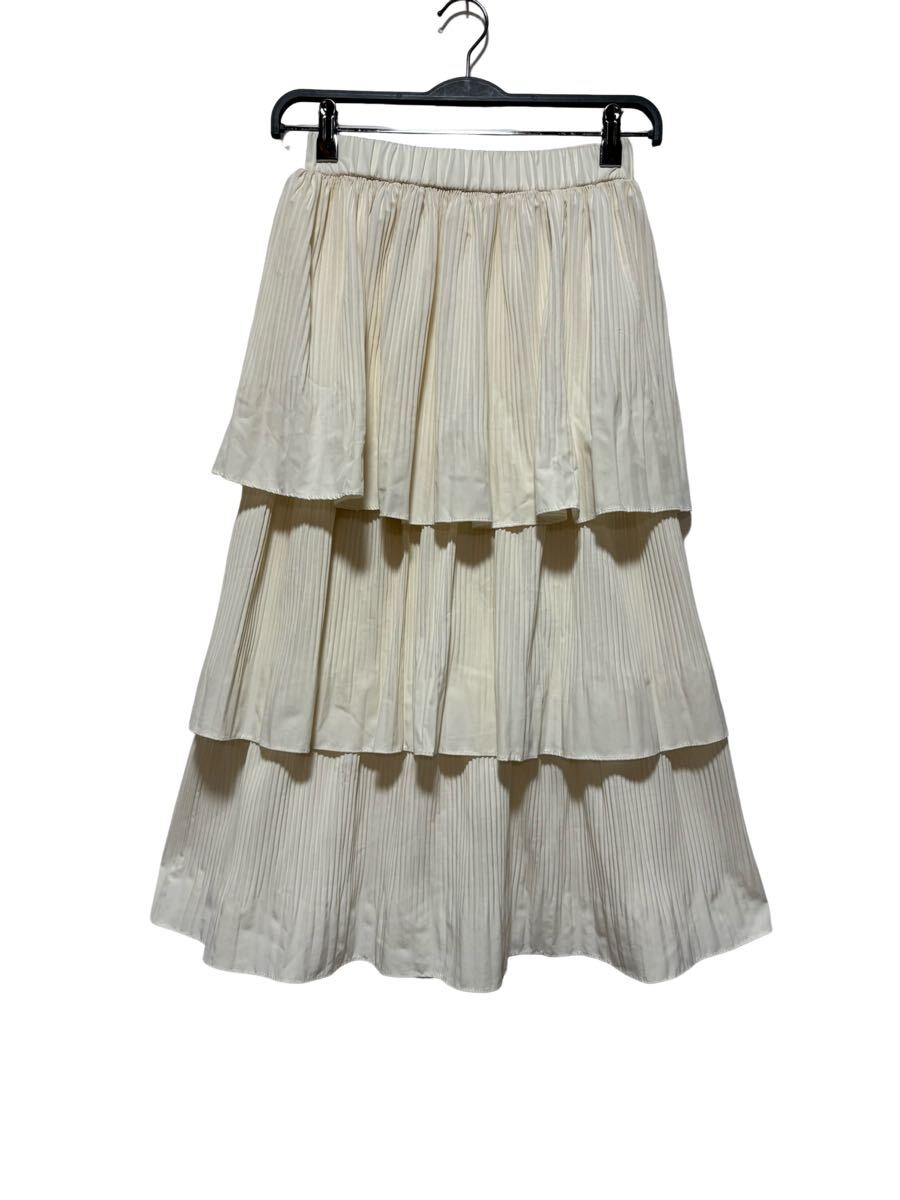 > lala Born プリーツスカート ティアードスカート 白 Mサイズ ウエストゴム ホワイト レディース リゾート おでかけ アートユニオン 古着