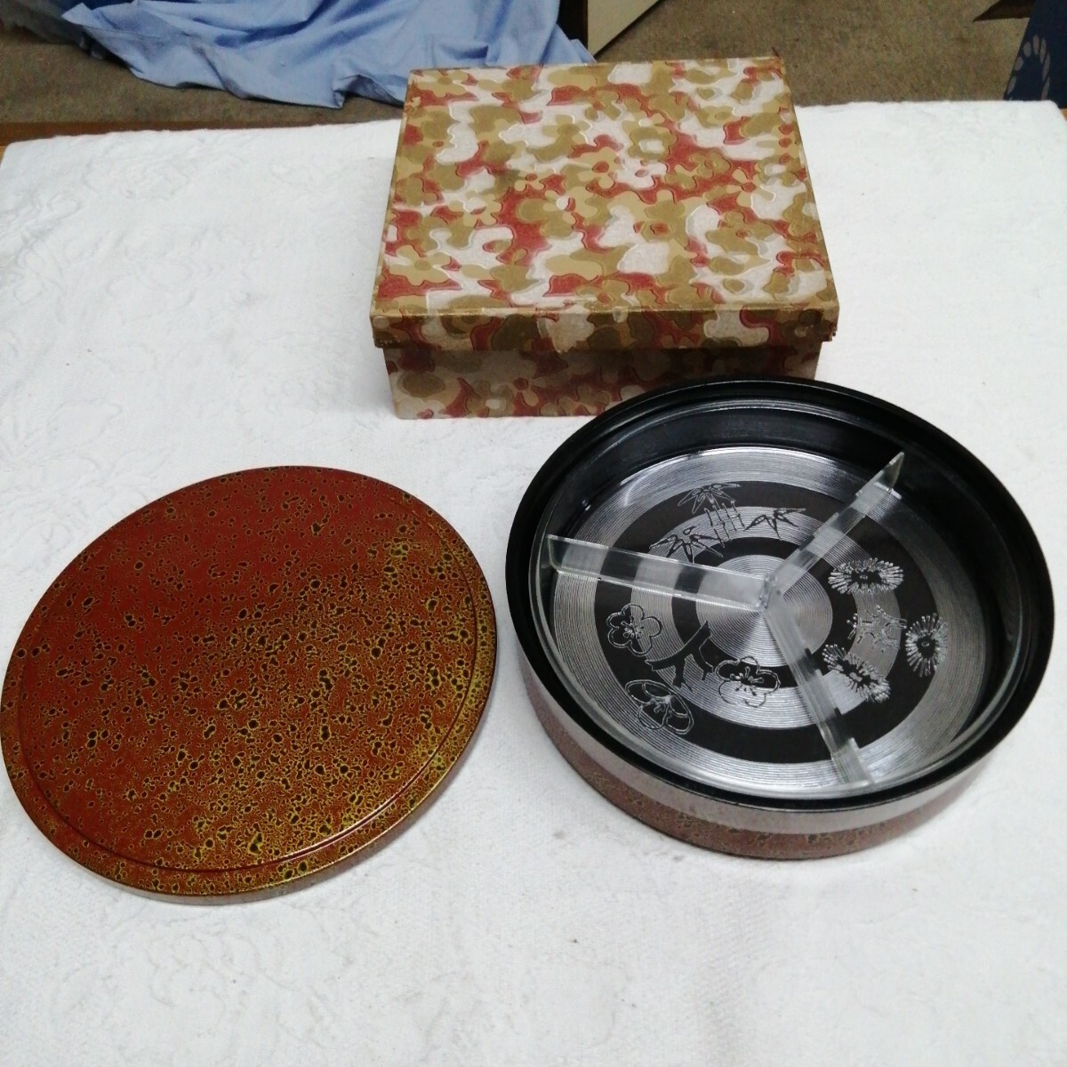 - 箱入 丸型 菓子器 茶道具 和菓子 盆 日本 和風 (約直径20.5cm)