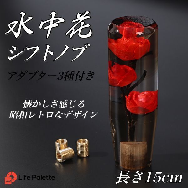 - 水中花シフトノブ 15cm グラデーション 軽トラ 旧車 街道レーサー カスタムカー ドリフト シフトノブ延長 薔薇 昭和 デコトラ ドリフト 赤