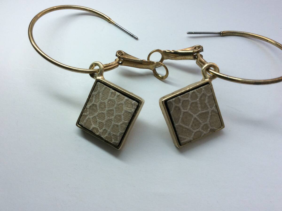 - A-54-3-1 大人シックなレザースクエアピアス 大型ゴールドリング