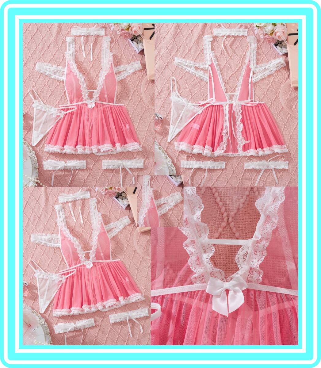 > ★超素敵★メッシュシースルー★ベビードール風コスチューム★ミニスカート★フリル★メイド風★レッグリング★チョーカー★Tバック★X173