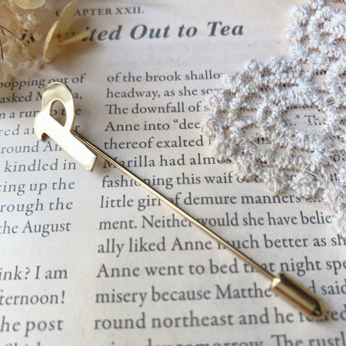 > ヴィンテージラペルピン ハットピン ピンブローチ ゴールドトーン アルファベット P☆vintage jewelry accessoriesR0885