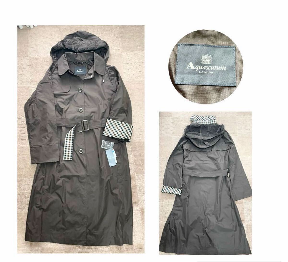 - 新品 アクアスキュータム レインコート レインウェア 収納袋付 撥水 防水 Mサイズ 茶 トレンチコート