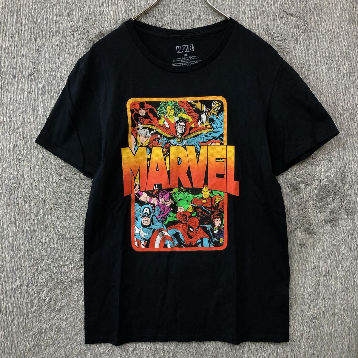 - MARVEL マーベル 半袖Tシャツ 半袖カットソー サイズM ブラック 黒 フロントプリント キャラクター メンズ トップス 最落なし(O2)